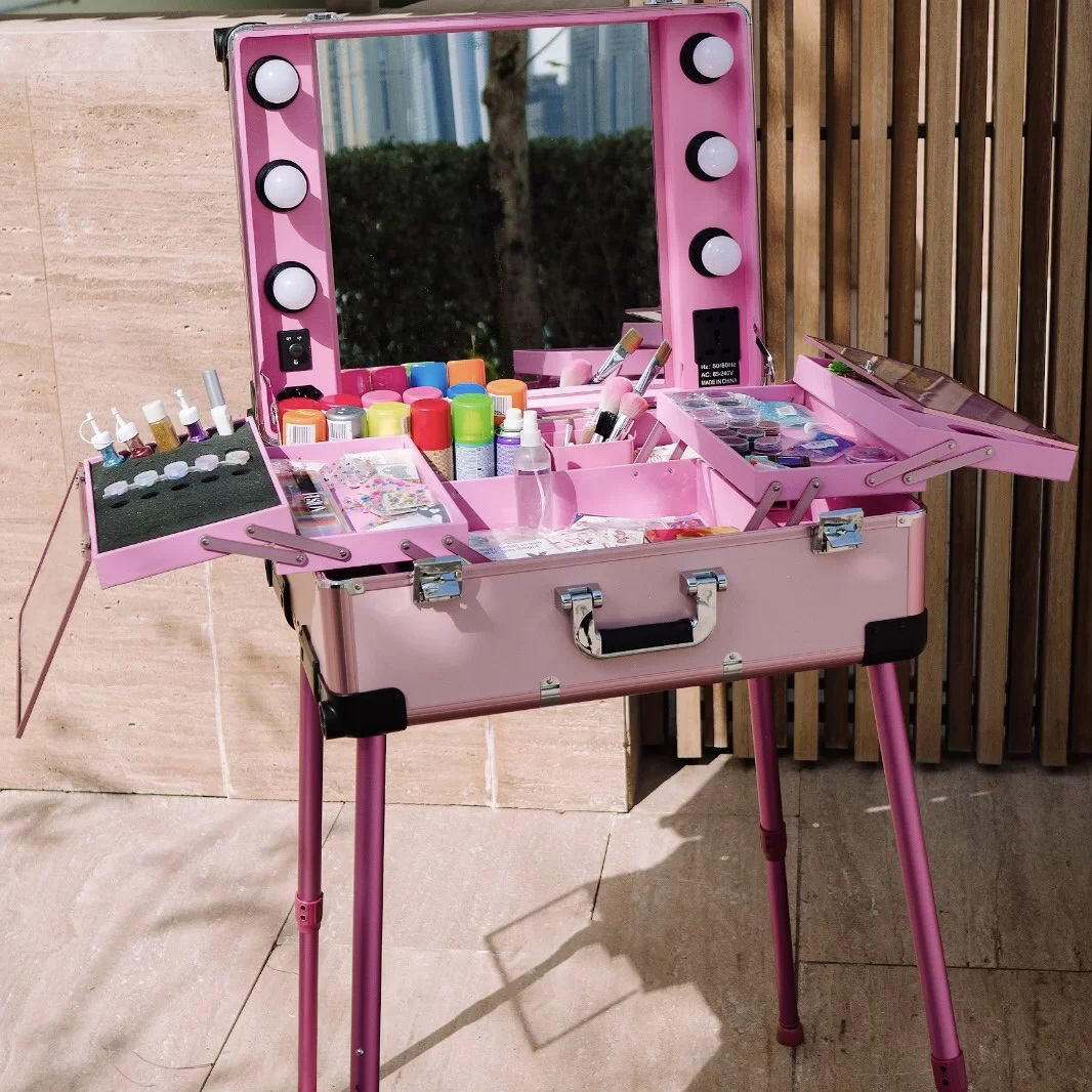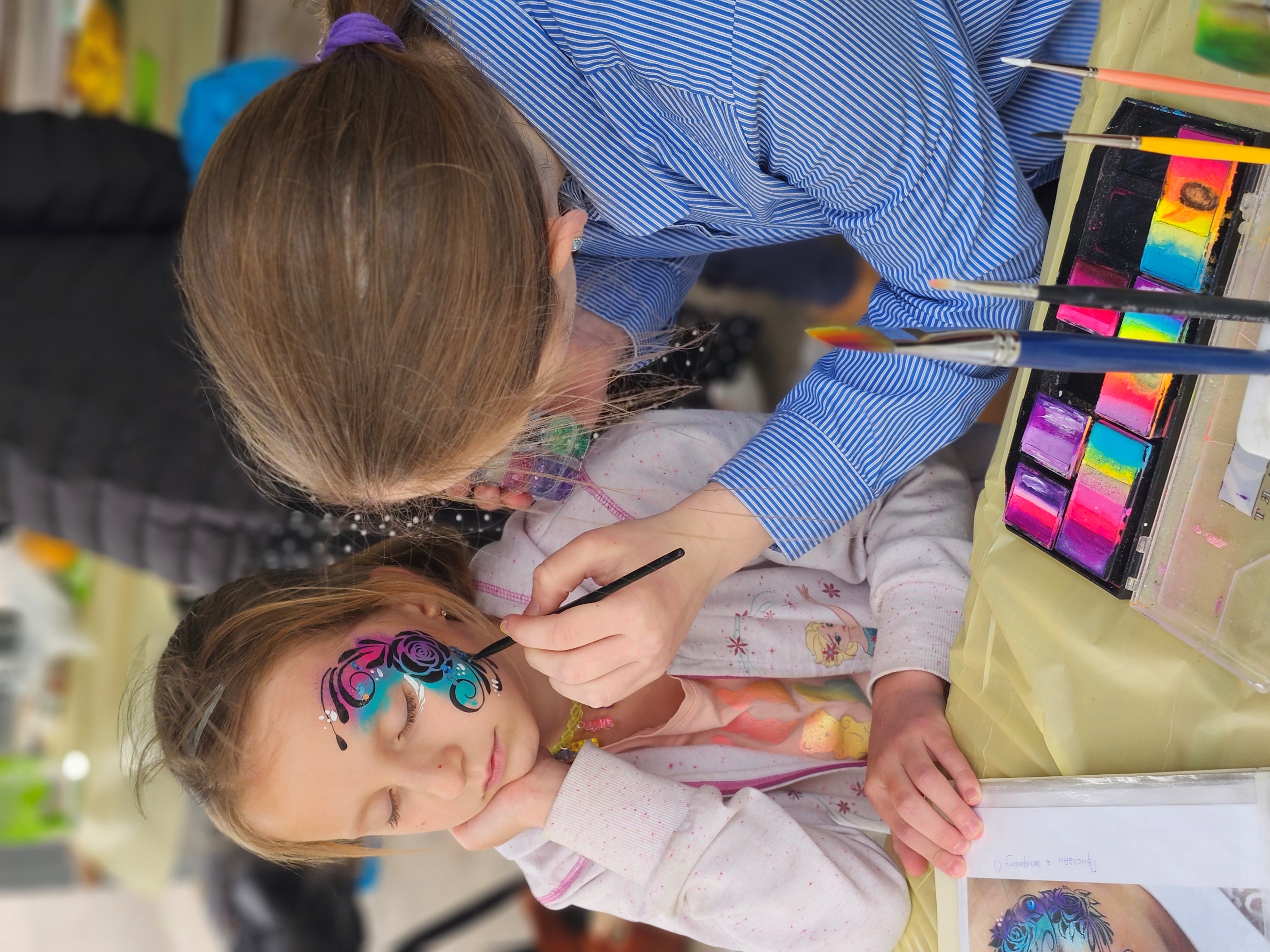 (beauty stations, sparkly face makeup, face gems and stickers, fun hairstyles, hair glitter or temporary hair chalk)